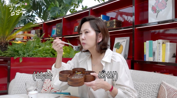 김남주. 사진|SBS Life 배우 김남주가 해외 명품 브랜드 루이비통 카페의 ‘만두’를 맛보고 극찬했다.