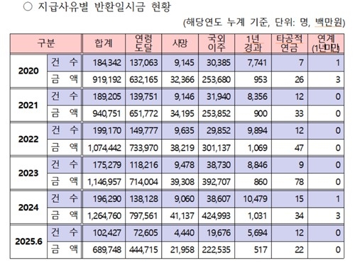 상반기 반환일시금 7000억…사유연령 도달 많아