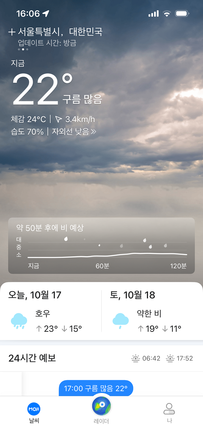 MojiWeather는 인터페이스를 설계함에 있어 한국 사용자의 사용 습관을 심층적으로 결합시켰다. 메인 화면은 간결하고 직관적이며 ‘현재 온도, 풍력, 습도 및 24시간 예보’ 등 핵심 정보를 디폴트로 표시하여 사용자는 복잡한 조작을 하지 않고도 빠르고 쉽게 날씨 데이터를 획득할 수 있으며, 이를 통해 시간을 절약하고 노력을 줄일 수 있다.