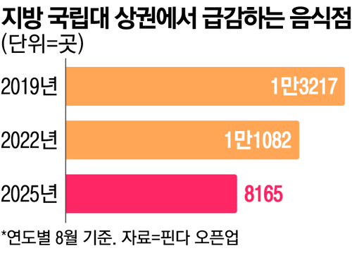 지역거점대학 8곳 인근 음식점 6년새 40% 급감