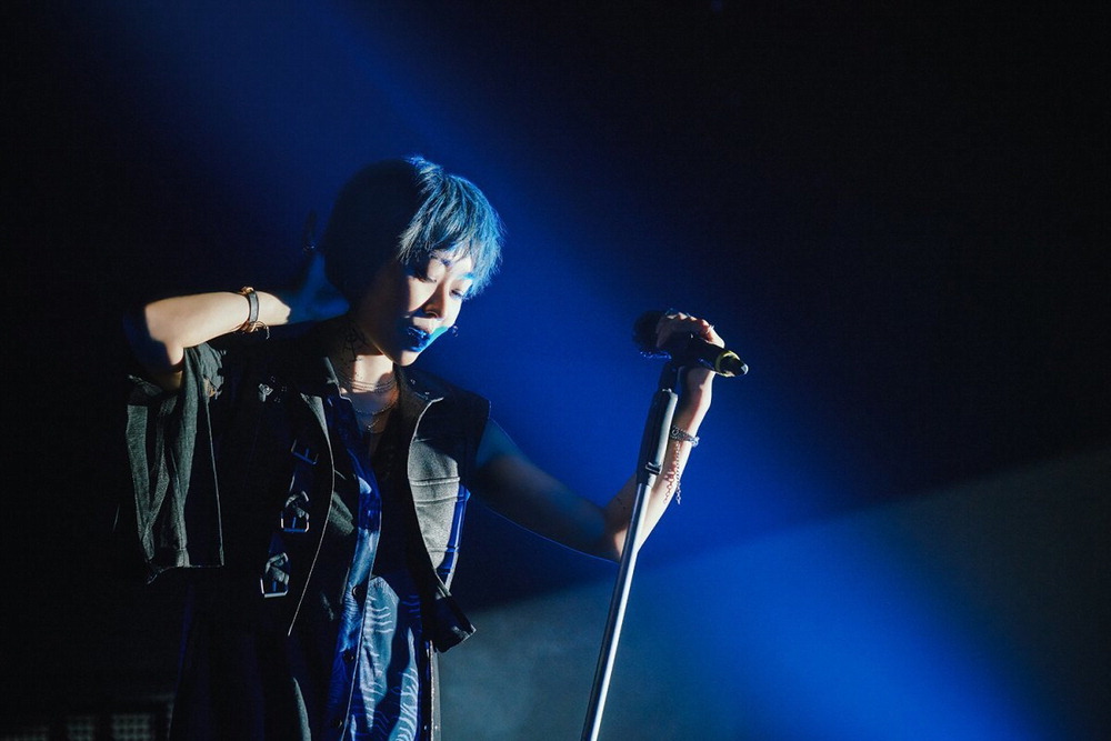 '트레이스 유' 공연에서 배우 선우가 노래하고 있다. 더웨이브