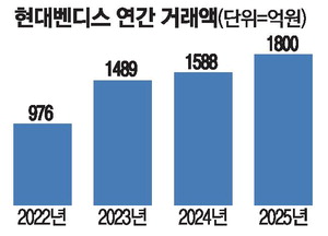 모바일 식권 기업 현대벤디스가 올해 연간 거래액이 1800억원을 돌파할 것으로 전망된다고 29일 밝혔다. 현대백화점그룹에 인수되기 전인 2022년 연간 거래액 976억원과 비교해 두 배 가까이 늘어난 규모다.