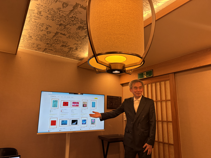 김영석 아트서울조직위원회 대표가 4일 서울 종로구의 한 식당에서 간담회를 열고 ‘20!2026 아트서울’을 설명하고 있다. <정유정 기자> 미술품을 샀다가 1년 이내에 마음이 바뀌면 구매가의 80%를 돌려받을 수 있는 실험이 시작된다. 미술시장의 가격 불투명성과 낮은 환금성을 디지털 기술로 정면 돌파하겠다는 취지다.