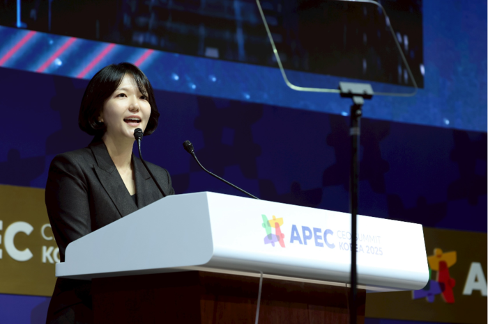 최수연 네이버 대표이사가 지난해 경상북도 경주시 예술의전당에서 열린 아시아태평양경제협력체(APEC) 정상회의 최고경영자(CEO) 서밋에서 기조연설을 하고 있다. [네이버] 정보기술(IT) 양대산맥인 네이버와 카카오가 경영진 연봉을 공개했다. 지난해 역대 최대 실적을 달성한 성과와 미래 성장 동력 발굴 기여도가 반영됐다.