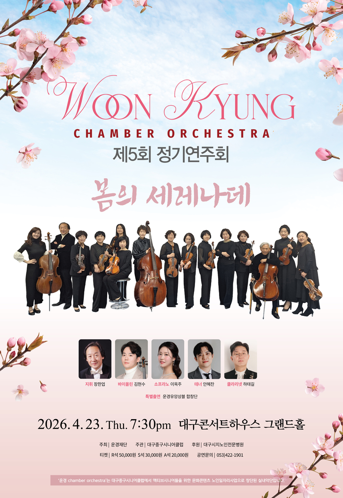 운경 챔버 오케스트라는 액티브 시니어를 위한 문화콘텐츠형 노인일자리사업의 하나로 운경재단 대구중구시니어클럽이 2021년 8월 전국 최초로 창단한 시니어 실내악단이다. 일반적인 공연 활동을 넘어 시니어의 사회참여 확대와 지역 문화예술 저변 확대에 기여하고 있다는 평가를 받고 있다. 이번 정기연주회 역시 클래식 공연의 문턱을 낮추고 시민과 가까이 호흡하는 자리로 마련됐다.