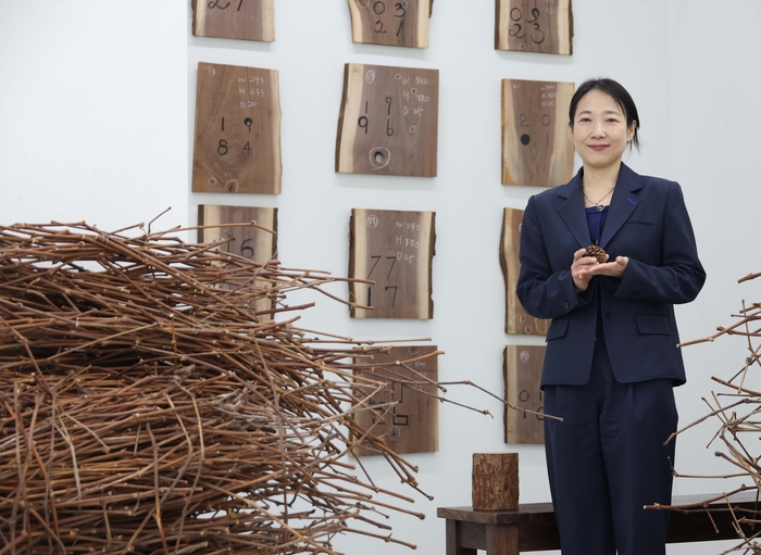 “더 이상 인간은 나무를 만지지 않는다. 나무는 보고,듣고,냄새 맡고,맛 보고,만지는 오감이 아닌 것이다. 하지만 나무는 ‘그곳’에 항상 서 있었다. 나무는 우리의 이야기를 온몸으로 수집하고 전파한다. 인간의 시간은 나무의 시간과 연결돼 있다.” 전시는 12일까지.