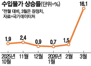 지난달 수입물가가 28년 만에 가장 큰 폭으로 상승한 것으로 나타났다. 중동 전쟁 여파로 국제유가가 치솟은 가운데 달러당 원화값이 하락한 탓이다.